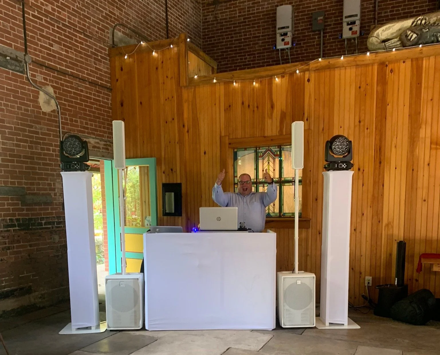 Dj Rick, can party to any event! We create a beautiful setup for any venue. With our all white set up, we allow all clients to choose their favorite color to up light the DJ, and the venue.